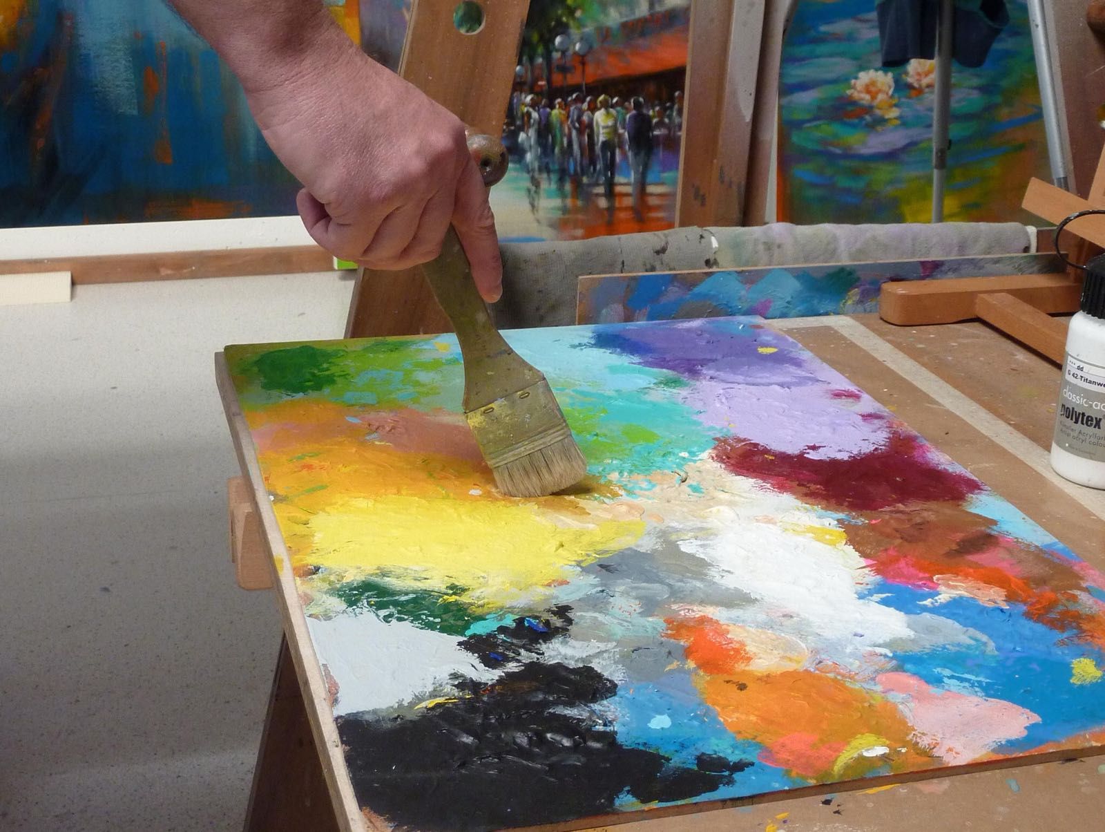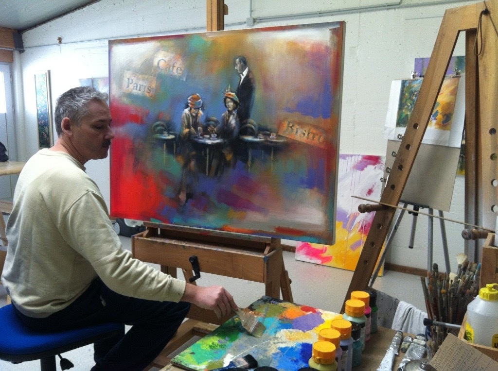 Heinz Rütti nimmt es auf, das Spiel mit den Erinnerungen. Vom Gegenständlichen zum Abstrakten, vom Zeitpunkt des Erlebens hin zu dem Moment, in dem die Erlebnisse nur noch in unserer Vorstellung existieren. Es sind die positiven Sequenzen, die Heinz Rütti in warmen, ausdrucksstarken Tönen und südländischem Flair erneut aufleben lässt. In Grautönen klar und deutlich umrissen, schwappt die Momentaufnahme über in die üppige Farbenwelt unserer Fantasie. Zeitgeist und Moderne geben sich die Hand.